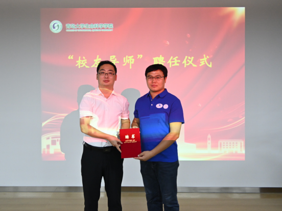 为优秀校友举行“校友导师”聘任仪式,搭建在校生与业界精英沟通桥梁,为新生提供实习、就业、学术交流等资源支持。优秀校友王滨结合从业经历剖析学科价值,鼓励新生扎根专业、敢为人先。